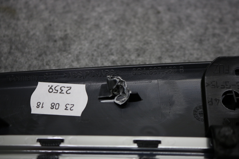Hinweis: Die Zierleisten sind ab Werk mit der Türverkleidung an einigen Punkten mit Plastik verschweißt, siehe Bild unterhalb der Artikelbeschreibung. Zur Demontage der Zierleisten haben wir die Schweißpunkte aufgebohrt. Zur erneuten Montage an der Türverkleidung müssten die Zierleisten individuell befestigt werden - vorzugweise durch 2-Komponenten Kleber an den ursprünglichen Schweißpunkten. Das Dekor stammt aus einer Neuwagenumrüstung.