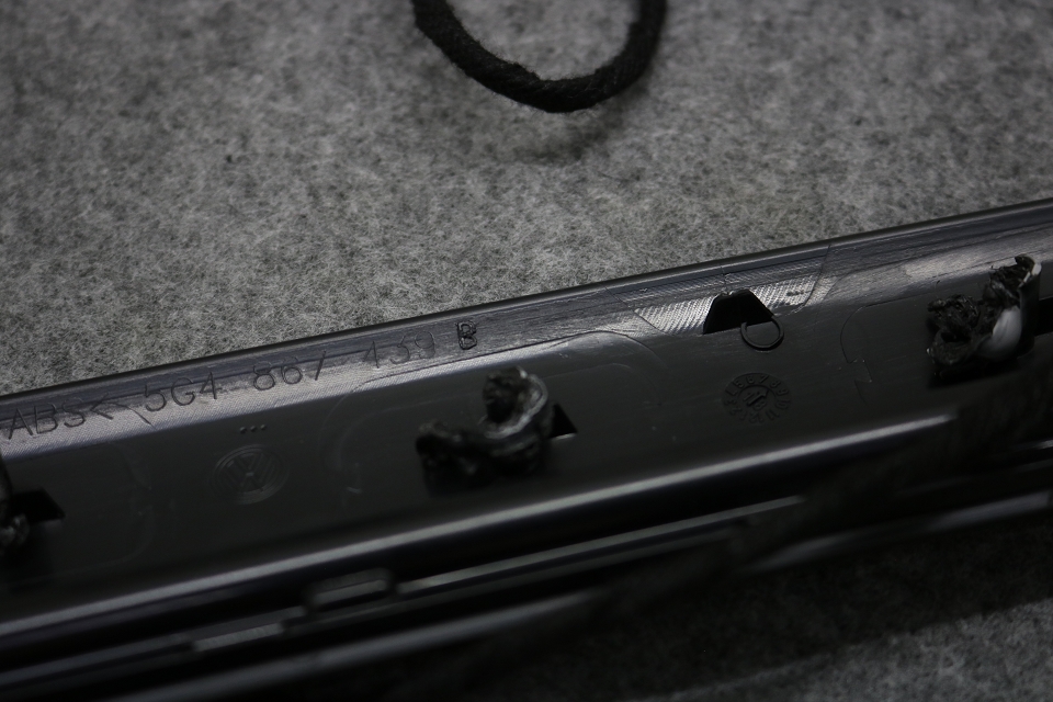 Hinweis: Die Zierleisten sind ab Werk mit der Türverkleidung an einigen Punkten mit Plastik verschweißt, siehe Bild unterhalb der Artikelbeschreibung. Zur Demontage der Zierleisten haben wir die Schweißpunkte aufgebohrt. Zur erneuten Montage an der Türverkleidung müssten die Zierleisten individuell befestigt werden - vorzugweise durch 2-Komponenten Kleber an den ursprünglichen Schweißpunkten. Das Dekor stammt aus einer Neuwagenumrüstung.